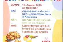 Die Kolpingsfamilie lädt am 18.12.25 um 18 Uhr sehr herzlich ins Gemeindezentrum Affaltrach ein. Mit adventlichen Impulsen, gemeinsamem Singen und anschließendem gemütlichen Beisammenstehen bei Glühwein und Punsch möchten wir Ihnen eine kleine spirituelle Auszeit im doch oft so trubeligen Advent bieten. Kommen Sie einfach vorbei. Wir freuen uns auf Sie.
