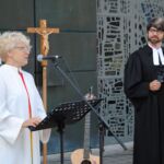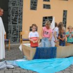 Der Platz vor der Vaterunserkirche in Willsbach/Sülzbach hat sich in den See Genezareth verwandelt, auf dessen Wellen ein Fischerboot dümpelt. „Wegen der Sperrung des Breitenauer Sees mussten wir unseren traditionellen Gottesdienst im Grünen auf den Platz vor unsere Vaterunserkirche verlegen“, sagt die Gemeindeleiterin Bärbel Bloching bei ihrer Begrüßung. Wie gut, dass der Platz groß genug ist. Stühle müssen vom Gemeindezentrum herausgetragen werden. Dabei achten die Helfer peinlich genau darauf, dass die coronabedingten Sicherheitsabstände eingehalten werden. Der Posaunenchor von Willsbach/Neulautern, unter der Leitung von Tobias Frey begleitet die Feier musikalisch. Die Liedbeiträge kommen von Pfarrer Dr. Rouven Genz (Gitarre), Tabea Ramsch und Anke Steinmetz. Der Sturm auf dem See Genezareth bildet das zentrale Thema des Gottesdienstes. Gemeindeleiterin Bärbel Bloching bittet die Kinder „um jede Menge Lärm“. Die lassen sich nicht zweimal bitten und der Kirchplatz dröhnt von Lärm, wie beim Sturm auf dem See Genezareth. Jesus will mit seinen Jüngern im Fischerboot, rüber auf die andere Seeseite. Für das Thema, „der Sturm auf dem See Genezareth“, braucht es die Crew des Fischerbootes, die Jünger von Jesu. Die Jünger, Kinder der kath. Kirchengemeinde, steigen ins Boot, legen sich in die Riemen und rudern was das Zeug hält. Der Wind wird immer stärker, entwickelt sich zum Sturm und das Ufer ist noch lange nicht in Sicht. „Andreas, rudere doch bitte ganz fest“, fordert Petrus (Marie) seinen Jünger-Kollegen auf. „Ich tu was ich kann Petrus, aber der Wind wird immer stärker und die Wellen immer höher“, entgegnet Andreas (Vanessa). „Ja, wo ist denn eigentlich Jesus?“, fragt Jakobus (Paul-Luca). „Der liegt hinten im Boot. Er hat sich extra noch ein Kissen geholt“, kommt die Antwort von Philippus (Leonie). Der Sturm wird immer heftiger. „Jesus wach auf – Jeeesus!“ Kommt der verzweifelte Ruf von den Jüngern“. Jesus (Barbara Weber-Weiß) wacht auf und gebietet dem Sturm. Es ist still – der Sturm hat sich gelegt. „Warum habt ihr mir nicht vertraut, dass ich euch helfen kann?“. Pfarrer Dr. Rouven Genz greift das Thema in seiner Predigt auf. Drei Dinge fallen ihm dabei auf: „Erstens, Jesus will rüber, er hat ein Ziel vor Augen, für sich und seine Jünger. Jesus hat auch ein Ziel vor Augen, wo er mit Dir hinmöchte. Er hat eine klare Perspektive für Dein Leben. Jesus will rüber mit Dir, vom Tod ins Leben. Er weiß genau, wo Du ankommen sollst“. Und das Zweite: Auch wo Jesus ist, gibt’s Wellen, gibt es Schwierigkeiten. Aber es mache einen großen Unterschied, ob Jesus dabei ist, gerade in schwierigen Zeiten, wie heute. Und drittens: Jesus lässt seine Jünger nicht untergehen. Er will, dass allen Menschen geholfen wird und sie zur Erkenntnis der Wahrheit kommen. Es geht darum, ob wir ihm vertrauen. Darum geht es ihm in guten Tagen und darum geht es ihm in schweren Zeiten. Jesus lässt dich nicht untergehen. Zur Erinnerung daran erhält jeder Besucher ein gefaltetes Papierschiffchen. hlö